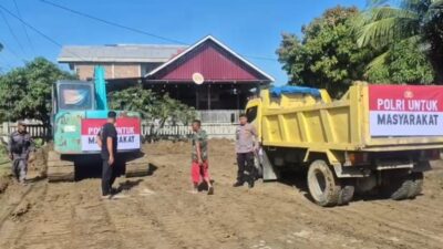 Dalam kegiatan tersebut, personel Polres Pidie bersama masyarakat menggunakan alat berat yang merupakan bantuan dari Bapak Kapolri guna mempercepat proses pembersihan material lumpur dan sisa-sisa banjir. Sinergi antara Polri dan masyarakat ini diharapkan dapat membantu mempercepat pemulihan kondisi lingkungan serta aktivitas warga pasca bencana.
