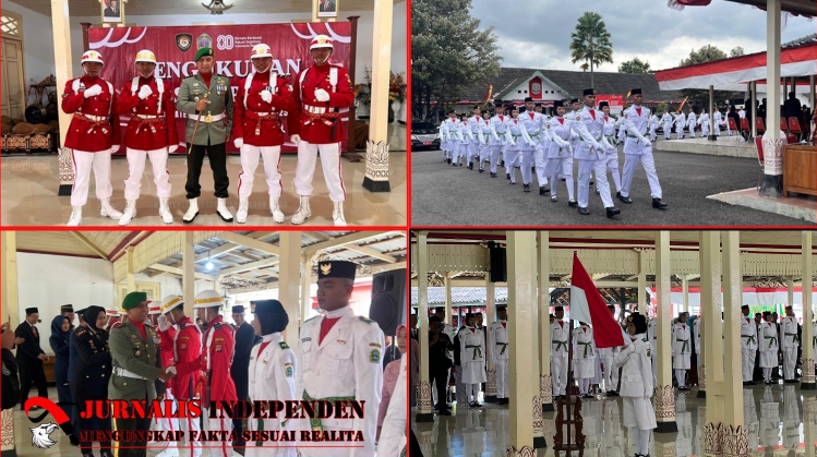 GUNUNGKIDUL (DIY) | JurnalisIndependen.co.id – Dandim 0730/Gunungkidul Letkol Inf Roni Hermawan, menghadiri upacara pengukuhan Pasukan Pengibar Bendera Pusaka (Paskibraka) dalam rangka peringatan HUT Kemerdekaan Republik Indonesia Ke-80 Tahun 2025, bertempat di Bangsal Sewoko Projo Kabupaten Gunungkidul. Jum’at, (15/08/2025).