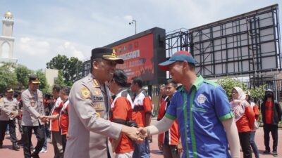 Sidoarjo 30 Oktober 2025 Jurnalis Independen.co.id  Ratusan buruh dan pekerja mengikuti apel kebangsaan yang digelar di Lapangan Mako Polresta Sidoarjo, Kamis (23/10/2025). Apel dipimpin Kapolresta Sidoarjo, juga diikuti pejabat utama serta kapolsek jajaran Polresta Sidoarjo.