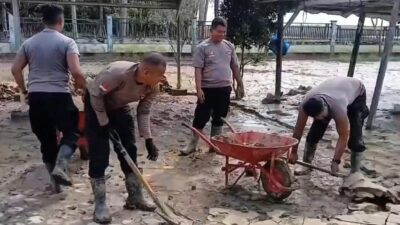 Sejak pukul 09.00 WIB, personel Sat Brimob Polda Aceh bahu-membahu membersihkan halaman dan ruang-ruang kelas dari lumpur serta sisa material banjir yang sebelumnya mengganggu aktivitas pendidikan. Pembersihan dilakukan secara menyeluruh agar seluruh fasilitas sekolah dapat digunakan secara optimal.