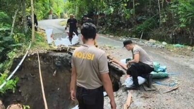 “Kami bersama warga melaksanakan kerja bakti memasang bronjong sebagai langkah penanganan darurat. Ini untuk memperkuat tebing dan menahan pergerakan tanah agar tidak terjadi longsor susulan,” ujar Iptu Sukirno.