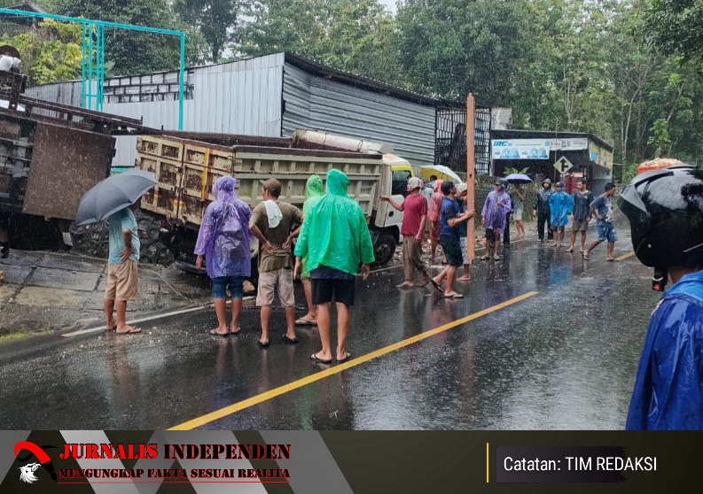 GUNUNGKIDUL (DIY) | JurnalisIndpenden.co.id – Kecelakaan tunggal kendaraan bermotor, Dump Truk Izusu AB 8096 MD terjadi di jalan Bedoyo – Baran tepatnya di depan balai Kalurahan Semugih, Kapanewon Rongkop, Kabupaten Gunungkidul, pada Rabu (26/11/2025).