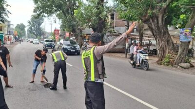 Operasi Keselamatan Semeru 2026 Polresta Sidoarjo Tambal Jalan Berlubang