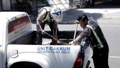 Kegiatan tersebut dipimpin langsung oleh Kanit Keamanan dan Keselamatan (Kamsel) Satlantas Polres Gresik, Ipda Andreas Dwi A., bersama Tim Khusus (Timsus) Unit Turjawali.