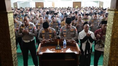 SURABAYA JurnalisIndependen.co.id Wujud kepedulian terhadap sesama, Polda Jatim menggelar Shalat Ghaib dan doa bersama untuk para korban bencana alam banjir bandang dan tanah longsor yang melanda Aceh, Sumatra Utara, dan Sumatra Barat, di Masjid Arif Nurul Huda Mapolda Jatim, Jumat (5/12/2025).
