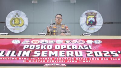 SURABAYA – Polda Jawa Timur mengimbau masyarakat agar meningkatkan kewaspadaan terhadap potensi cuaca ekstrem yang diperkirakan terjadi pada akhir tahun 2025, khususnya di momen libur Natal dan Tahun Baru (Nataru).