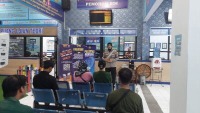 Edukasi yang diberikan mencakup informasi biaya resmi penerbitan SIM, mekanisme SOP pelayanan, serta tata cara penanganan kendala administrasi agar masyarakat tidak terjebak pada praktik calo.