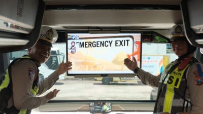 Salah satunya melalui program “Polantas Menyapa” dengan penayangan video keselamatan di bus angkutan penumpang.