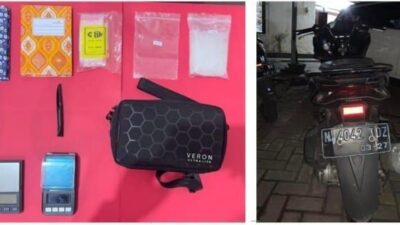 Selain itu, diamankan pula sejumlah barang pendukung seperti timbangan elektrik, ponsel, uang tunai, hingga kendaraan bermotor.