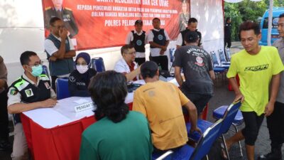 Pada Jumat (12/12/2025), aparat kepolisian berkolaborasi dengan BNNK Surabaya menggelar kegiatan Bakti Kesehatan dan Tes Urine bagi para pengemudi angkutan umum, angkutan antar pulau, serta ojek online (Ojol) yang melintas di kawasan Gate Pelabuhan Jamrud, Jalan Perak Timur.