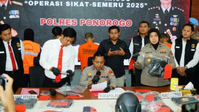 Wakapolres Ponorogo Kompol Ari Bayuaji dalam konferensi pers di Mapolres Ponorogo, Senin (10/11/2025), menjelaskan bahwa pengungkapan kasus ini berawal dari laporan masyarakat terkait adanya aktivitas jual beli senjata api.