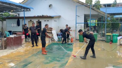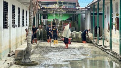 Langkat JurnalisIndependen.co.id Personel Satuan Brimob Polda Sumatera Utara melaksanakan kegiatan pembersihan lingkungan sekolah yang terdampak banjir di SMA Negeri 1 Tanjung Pura, Kabupaten Langkat, Minggu (28/12/2025). Kegiatan ini difokuskan pada ruang kelas, halaman sekolah, saluran drainase, serta fasilitas penunjang pendidikan lainnya yang dipenuhi lumpur, sampah, dan sisa material banjir, guna memulihkan kondisi sekolah agar dapat kembali digunakan oleh para siswa dan tenaga pendidik.