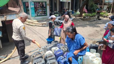 Selain menyalurkan air bersih, Kapolsek juga berdialog dengan warga serta Kepala Dusun Jatisari untuk mendengarkan langsung keluhan mereka terkait kesulitan mendapatkan air bersih.