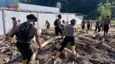 JurnalisIndependen.co.id Polri terus berkomitmen dalam melakukan percepatan penanganan pasca-bencana banjir bandang yang melanda wilayah Sumatera Barat. Melalui Tim SAR Resimen II Pasukan Pelopor yang sedang melaksanakan BKO di Polda Sumbar, aksi pembersihan material sisa bencana dilakukan di sepanjang aliran sungai Desa Kampung Tengah, Kecamatan Palembayan, Kabupaten Agam, Selasa (27/1).