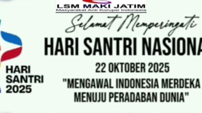 Peringatan Hari Santri Nasional 2025 menjadi momen penuh makna bagi seluruh lapisan masyarakat, termasuk para pegiat antikorupsi di Indonesia. Salah satunya adalah Heru Satriyo, S.Ip, Ketua LSM Masyarakat Anti Korupsi Indonesia (MAKI) Koordinator Wilayah Jawa Timur, yang turut menyampaikan pesan hangat dan penuh harapan kepada seluruh santri di Tanah Air.